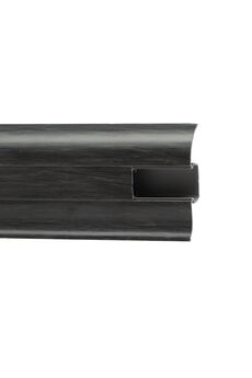 Утонченный и высокий профиль (58 мм) с острыми краями. Благодаря съёмной панели монтаж электрических проводов, покраска стен, оклеивание обоями возможны без демонтажа профилей. Конструкция позволяет монтировать и демонтировать плинтус без использования инструментов. Существует возможность размещения большого количества проводов, в том числе после монтажа. Специальная двухслойная технология: помимо слоя краски, дополнительно покрывается специальным лаком, благодаря чему его покрытие становится однородным, а это дополнительно защищает изделие от разного вида механических повреждений и вредного воздействия лучей УФ. Благодаря эластичному материалу, плинтус идеально прилегает даже к неровностям стен и полов. Чёрный плинтус из прочного пластика высотой 58 мм, стойкий к влаге. Для аккуратной отделки пола, легко монтируется и защищает стыки.