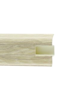 Утонченный и высокий профиль (58 мм) с острыми краями. Благодаря съёмной панели монтаж электрических проводов, покраска стен, оклеивание обоями возможны без демонтажа профилей. Конструкция позволяет монтировать и демонтировать плинтус без использования инструментов. Существует возможность размещения большого количества проводов, в том числе после монтажа. Специальная двухслойная технология: помимо слоя краски, дополнительно покрывается специальным лаком, благодаря чему его покрытие становится однородным, а это дополнительно защищает изделие от разного вида механических повреждений и вредного воздействия лучей УФ. Благодаря эластичному материалу, плинтус идеально прилегает даже к неровностям стен и полов. Плинтус ПВХ 58 мм, 2,5 м, прочный, с декором под бук премиум. Просто монтируется, скрывает кабели. Идеален для жилых и офисных помещений.