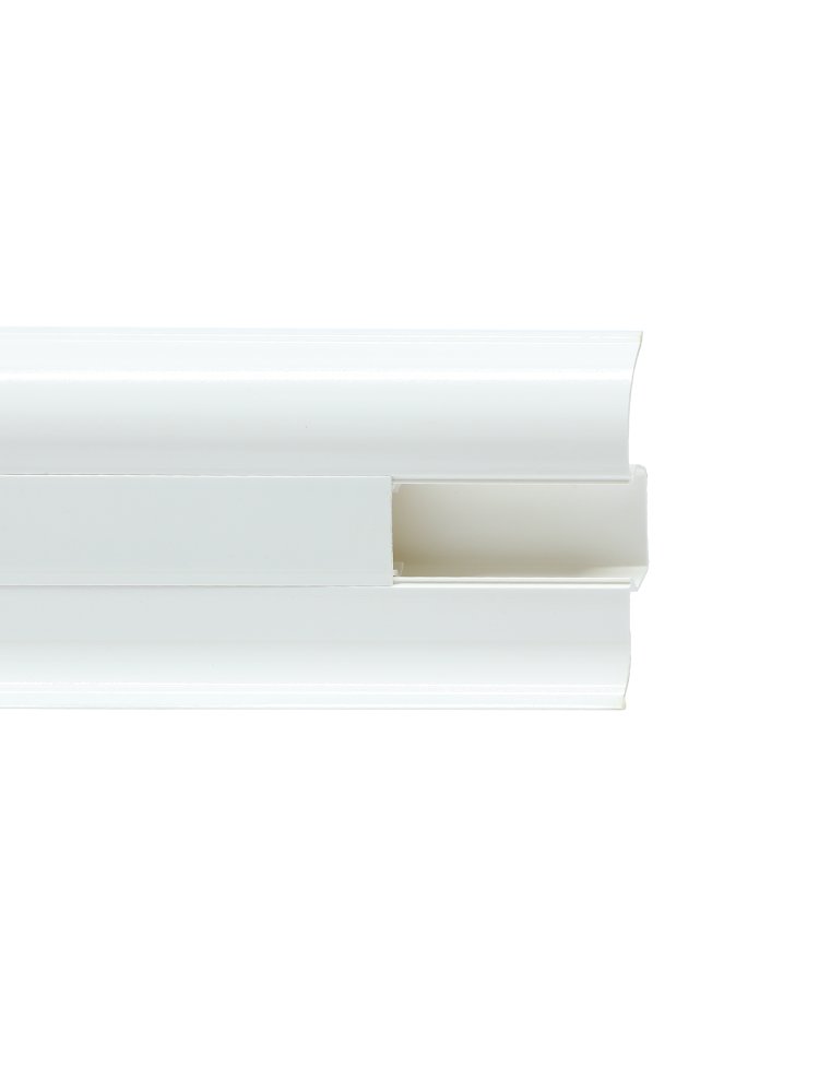 Утонченный и высокий профиль (58 мм) с острыми краями. Благодаря съёмной панели монтаж электрических проводов, покраска стен, оклеивание обоями возможны без демонтажа профилей. Конструкция позволяет монтировать и демонтировать плинтус без использования инструментов. Существует возможность размещения большого количества проводов, в том числе после монтажа. Специальная двухслойная технология: помимо слоя краски, дополнительно покрывается специальным лаком, благодаря чему его покрытие становится однородным, а это дополнительно защищает изделие от разного вида механических повреждений и вредного воздействия лучей УФ. Благодаря эластичному материалу, плинтус идеально прилегает даже к неровностям стен и полов. Эстетичный плинтус 58 мм цвета "Айвори", 2,5 м с кабель-каналом. Лёгкий монтаж, влагостойкий пластик, подходит для любого типа помещения.