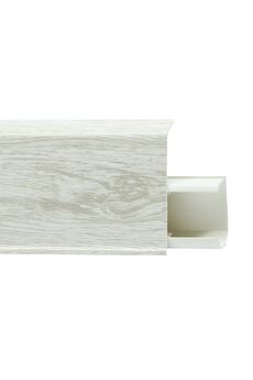Утонченный и высокий профиль (58 мм) с острыми краями. Благодаря съёмной панели монтаж электрических проводов, покраска стен, оклеивание обоями возможны без демонтажа профилей. Конструкция позволяет монтировать и демонтировать плинтус без использования инструментов. Существует возможность размещения большого количества проводов, в том числе после монтажа. Специальная двухслойная технология: помимо слоя краски, дополнительно покрывается специальным лаком, благодаря чему его покрытие становится однородным, а это дополнительно защищает изделие от разного вида механических повреждений и вредного воздействия лучей УФ. Благодаря эластичному материалу, плинтус идеально прилегает даже к неровностям стен и полов. Влагостойкий ПВХ плинтус с кабель-каналом 2,2 м, 58 мм, цвет дуб полярный — прочная защита и стиль для любого пола и интерьера.
