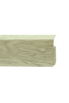 Утонченный и высокий профиль (80 мм) с острыми краями. Благодаря съёмной панели монтаж электрических проводов, покраска стен, оклеивание обоями возможны без демонтажа профилей. Конструкция позволяет монтировать и демонтировать плинтус без использования инструментов. Существует возможность размещения большого количества проводов, в том числе после монтажа. Специальная двухслойная технология: помимо слоя краски, дополнительно покрывается специальным лаком, благодаря чему его покрытие становится однородным, а это дополнительно защищает изделие от разного вида механических повреждений и вредного воздействия лучей УФ. Благодаря эластичному материалу, плинтус идеально прилегает даже к неровностям стен и полов. Стильный плинтус с текстурой дуба, высота 80мм, длина 2,2м, влагостойкий, лёгкий монтаж, скрывает провода и обеспечивает аккуратный интерьер.