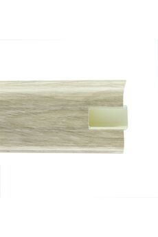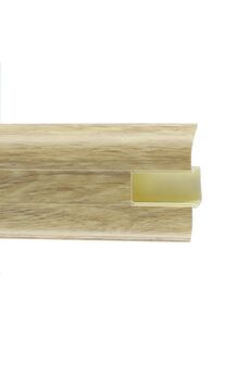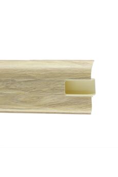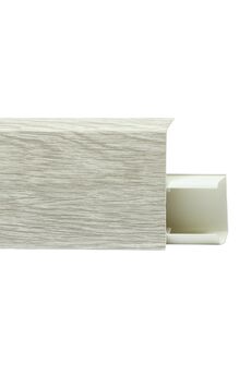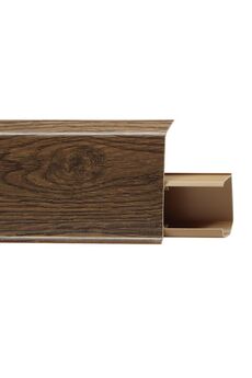 Утонченный и высокий профиль (58 мм) с острыми краями. Благодаря съёмной панели монтаж электрических проводов, покраска стен, оклеивание обоями возможны без демонтажа профилей. Конструкция позволяет монтировать и демонтировать плинтус без использования инструментов. Существует возможность размещения большого количества проводов, в том числе после монтажа. Специальная двухслойная технология: помимо слоя краски, дополнительно покрывается специальным лаком, благодаря чему его покрытие становится однородным, а это дополнительно защищает изделие от разного вида механических повреждений и вредного воздействия лучей УФ. Благодаря эластичному материалу, плинтус идеально прилегает даже к неровностям стен и полов. Износостойкий плинтус 58 мм с каналом для кабеля, длина 2,5 м, влагоустойчив, дизайн под дуб. Идеален для чистой и аккуратной отделки пола.