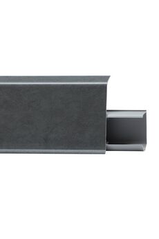 Утонченный и высокий профиль (72 мм) с острыми краями. Благодаря съёмной панели монтаж электрических проводов, покраска стен, оклеивание обоями возможны без демонтажа профилей. Конструкция позволяет монтировать и демонтировать плинтус без использования инструментов. Существует возможность размещения большого количества проводов, в том числе после монтажа. Специальная двухслойная технология: помимо слоя краски, дополнительно покрывается специальным лаком, благодаря чему его покрытие становится однородным, а это дополнительно защищает изделие от разного вида механических повреждений и вредного воздействия лучей УФ. Благодаря эластичному материалу, плинтус идеально прилегает даже к неровностям стен и полов. Стильный тёмно-серый плинтус 72 мм, длина 2,2 м, влагостойкий ПВХ, скрывает кабели, легко монтируется, защищает стены от повреждений.