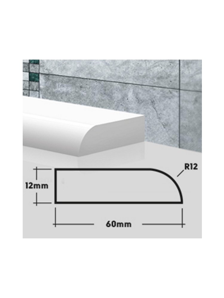 Служит для скрытия стыков между раковиной или ванной и стеной. Акриловый камень, из которого сделаны бордюры, очень плотный и прочный материал. В нем нет пор, поэтому в нём не заводятся плесень и грибок. Он прост в уходе, не боится влажности и бытовой химии, не меняет свой цвет и форму. Для распила потребуется ножовка по металлу или торцовочная пила с диском по дереву или алюминию, монтаж производится на герметик или водостойкий клей. Влагостойкий акриловый плинтус-бордюр для ванны и кухни, размер 12×60×1800 мм, легко монтируется, защищает от влаги и плесени, долговечный.