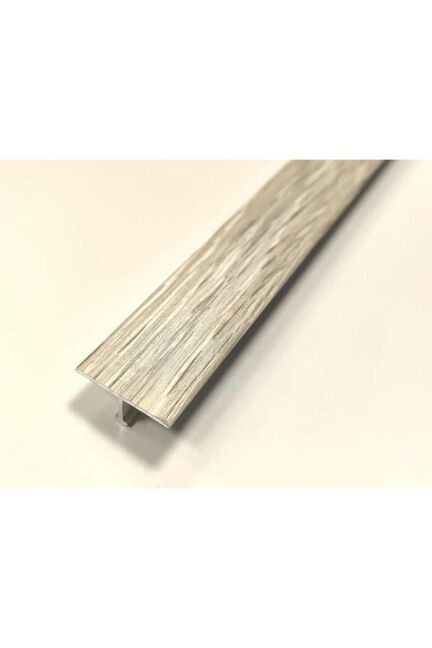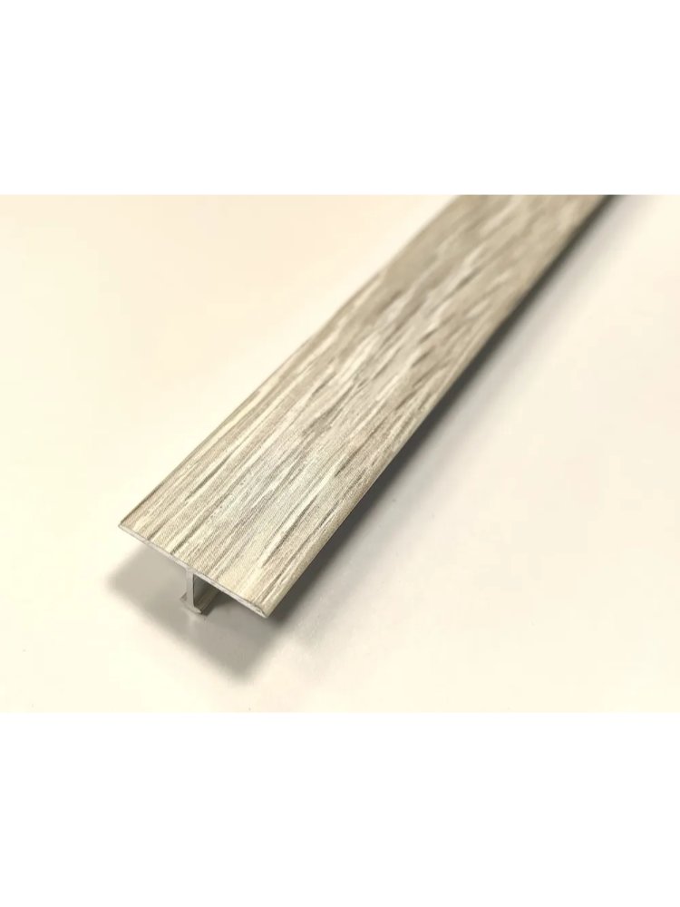 Т-образный алюминиевый порог 18 мм, 0,9 м, ламинированный под цвет "Дуб грей" — прочное и стильное решение для безупречных стыков напольных покрытий.