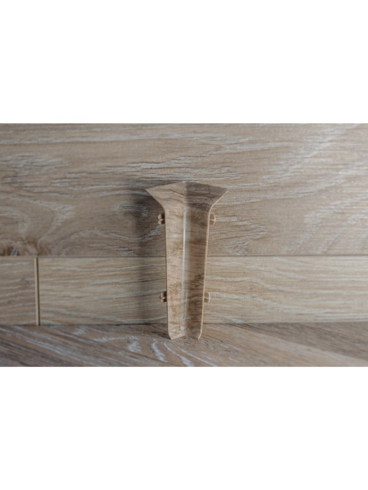 Внутренний угол Quadro с фактурой дуба — идеальное решение для аккуратного и стильного оформления стыков плинтусов в интерьере. Предназначен для маскировки и защиты внутренних углов стен при укладке напольного плинтуса, обеспечивает безупречную эстетику отделки и долговечность.
