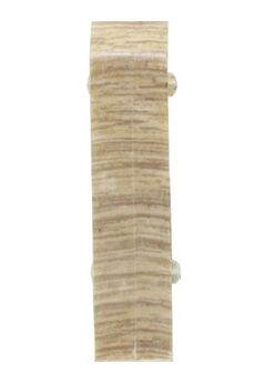 Утонченный и высокий профиль (58 мм) с острыми краями. Благодаря съёмной панели монтаж электрических проводов, покраска стен, оклеивание обоями возможны без демонтажа профилей. Конструкция позволяет монтировать и демонтировать плинтус без использования инструментов. Существует возможность размещения большого количества проводов, в том числе после монтажа. Специальная двухслойная технология: помимо слоя краски, дополнительно покрывается специальным лаком, благодаря чему его покрытие становится однородным, а это дополнительно защищает изделие от разного вида механических повреждений и вредного воздействия лучей УФ. Благодаря эластичному материалу, плинтус идеально прилегает даже к неровностям стен и полов. Соединитель T-Plast Дуб Полярный 58 мм, упаковка - 2 шт. Прочный пластик, устойчив к влаге, имитирует дерево. Для соединения плинтусов в стыках.