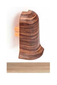 Утонченный и высокий профиль (58 мм) с острыми краями. Благодаря съёмной панели монтаж электрических проводов, покраска стен, оклеивание обоями возможны без демонтажа профилей. Конструкция позволяет монтировать и демонтировать плинтус без использования инструментов. Существует возможность размещения большого количества проводов, в том числе после монтажа. Специальная двухслойная технология: помимо слоя краски, дополнительно покрывается специальным лаком, благодаря чему его покрытие становится однородным, а это дополнительно защищает изделие от разного вида механических повреждений и вредного воздействия лучей УФ. Благодаря эластичному материалу, плинтус идеально прилегает даже к неровностям стен и полов. Внутренний угол из прочного пластика 58мм, цвет — дуб Пиреней, легко устанавливается, защищает стыки плинтуса и придаёт интерьеру завершённый вид.