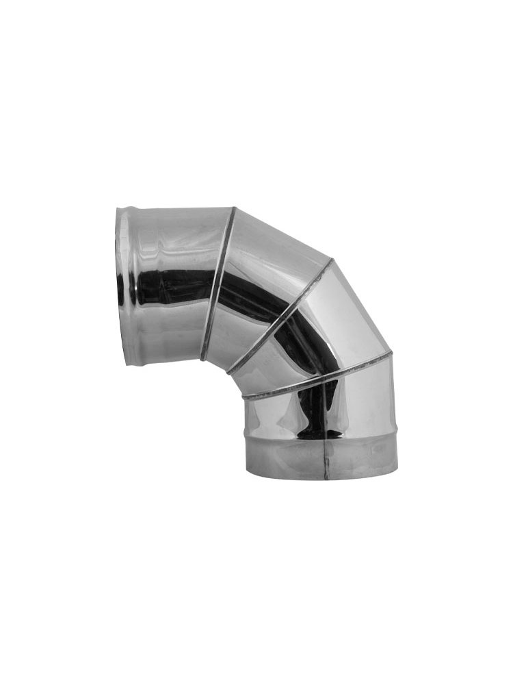 - Угол поворота 90° обеспечивает компактный и удобный монтаж в ограниченных пространствах, сохраняя максимальную пропускную способность дымохода.