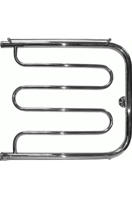 Водяное боковое подключение, Размер подключения (3/4"-1"), 4 вставки, Sотапл. пом.<1,58м², с полочкой Компактный полотенцесушитель 50×50 см, стальной, устойчив к коррозии, удобен для сушки нескольких полотенец и защищает ванную от сырости.