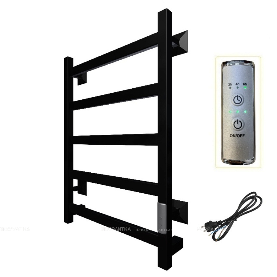 Водяной полотенцесушитель 60×40 см, черный, из прочной стали с антикоррозийным покрытием. Эффективно сушит и украшает ванную комнату.