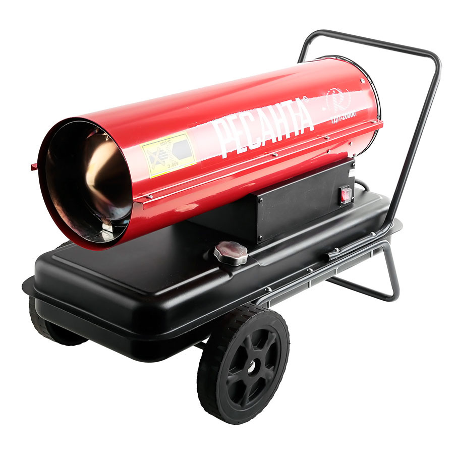 Тепловая пушка Ресанта ТДП-20000 предназначена для обогрева и применяется на строительных объектах, складских помещениях и цехах, в производственной сфере. Серия ТДП является пушкой с прямым нагревом воздуха, воздушная масса проходит непосредственно через камеру горения (пламя), там холодный воздух нагревается и выходит уже горячим, но при таком нагреве воздух смешивается с отходами горения (дым, запах) тем самым попадая в обогреваемое помещение.
