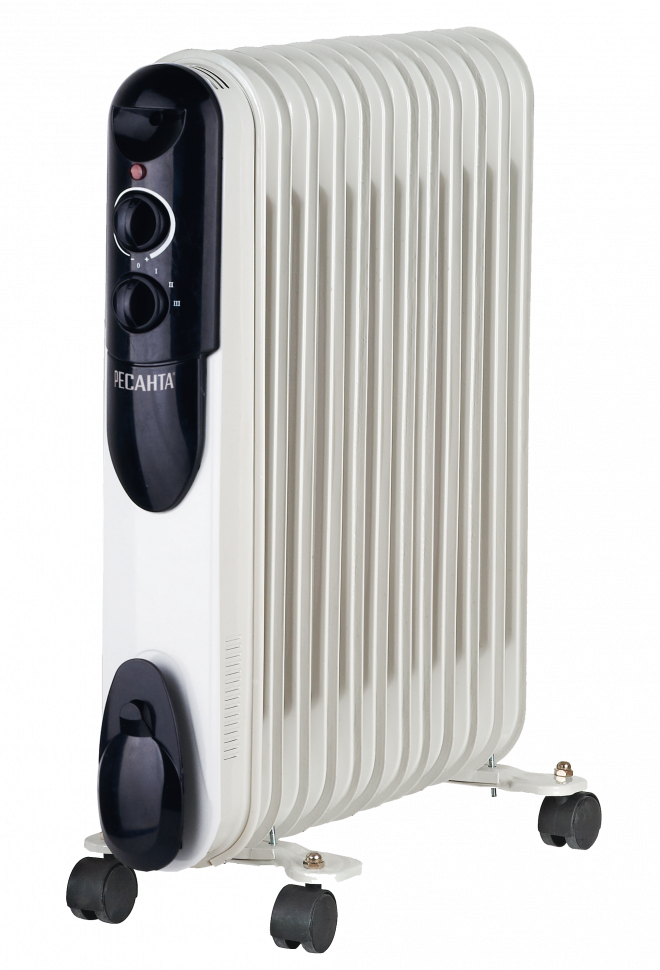 Масляный радиатор Ресанта ОМПТ-12Н, состоящий из 12 секций, сделает любое помещение размерами до 25 м², теплым и уютным. Радиатор устанавливается на пол, а за счет колесиков и удобной ручки его можно легко перемещать в любое место комнаты. Радиатору не требуется особого ухода, достаточно время от времени протирать его влажной тряпкой. Он подключается к домашней электросети (напряжение 220/240 В) с помощью шнура с вилкой. В отключенном состоянии шнур убирается в специальный отсек. Для управления масляным радиатором Ресанта ОМПТ-12Н на его корпусе размещены поворотные переключатели и индикатор рабочего состояния прибора. Благодаря им вы сможете выбрать мощность нагрева из 3 представленных режимов. Максимальная мощность энергопотребления у радиатора составляет 2500 Вт. Регулируемый термостат обеспечит экономию электричества, автоматически отключая и включая радиатор. Для безопасного использования прибора предусмотрена функция защиты от перегрева, позволяющая отключать радиатор в случае с Мощность 2500 Вт, 12 сек