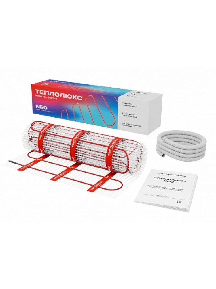 Теплый пол на основе нагревательных матов «Теплолюкс» Neo – это новый стандарт электрического теплого пола с высоким уровнем надежности и комфорта.Нагревательные маты Neo предназначены для обеспечения комфортной температуры поверхности пола при наличии основной системы отопления.При производстве нагревательных матов NEO используется кабель с линейной мощностью 12Вт/м, что существенно снижает риск перегрева. Удельная мощность 160 Вт/м2 и шаг раскладки двухжильного нагревательного кабеля всего 7 см обеспечивают быстрый и эффективный прогрев всей поверхности пола без эффекта тепловой "зебры".Нагревательный кабель крепко зафиксирован на сетке из стекловолокна без эффекта памяти, что упрощает монтаж и формирует надежную долговечную конструкцию мата.Фирменная литая муфта из термостойкого материала обеспечивает высочайший класс надежности электрического подключения. Удобный и быстрый монтаж в плиточный клей или стяжку, не поднимает уровень пола.