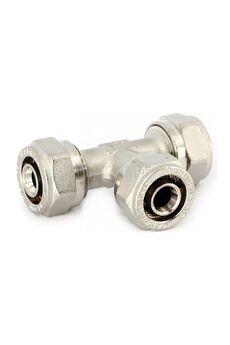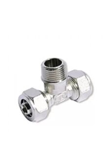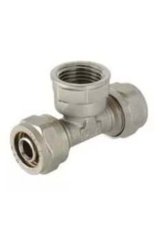 Тройник для металлополимерных труб 20*1/2"*20 мм с никелированием, подходит для водоснабжения и отопления, устойчив к коррозии и перепадам давления.