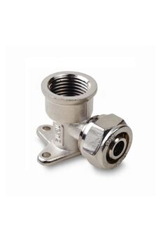Латунный никелированный фитинг для металлопластиковых труб, монтаж под стену, 20 мм х 1/2” ВР, устойчив к коррозии и высоким температурам.