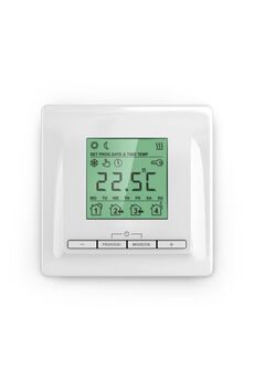 Терморегулятор поддерживает комфортную температуру обогреваемой поверхности и обеспечивает рациональный расход электроэнергии. Терморегулятор обеспечивает управление по двум датчикам температуры: пола и воздуха, как одновременно, так и по отдельности. Терморегулятор может осуществлять управление водяными теплыми полами при использовании термоголовки нормально закрытого типа с управлением 230В. Терморегулятор оснащен информационным жидкокристаллическим экраном, отображающим состояние системы обогрева и сенсорными кнопками управления Точный электронный регулятор для "тёплого пола" с цифровым дисплеем, настройкой по градусам и стильным дизайном для современного интерьера.