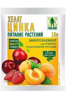 Водорастворимый цинк-хелат для эффективного питания и восстановления растений. Повышает урожайность, предотвращает хлороз, быстро усваивается.