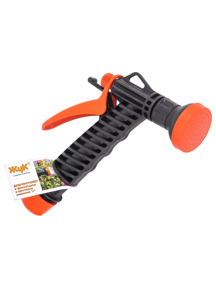 Легко и удобно поливайте растения и мойте садовую технику благодаря поливочному душе-пистолету с фиксатором и цанговым зажимом 1/2. Решение для дома, сада, дачи и огорода, обеспечивающее точную регулировку напора и формы струи.