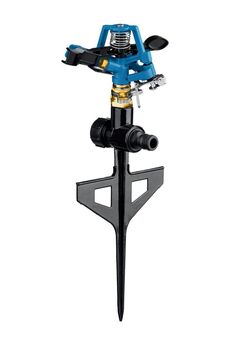 Круговой распылитель на пике для газонов и клумб, площадь полива до 113 м², долговечные материалы, удобное подключение и установка.