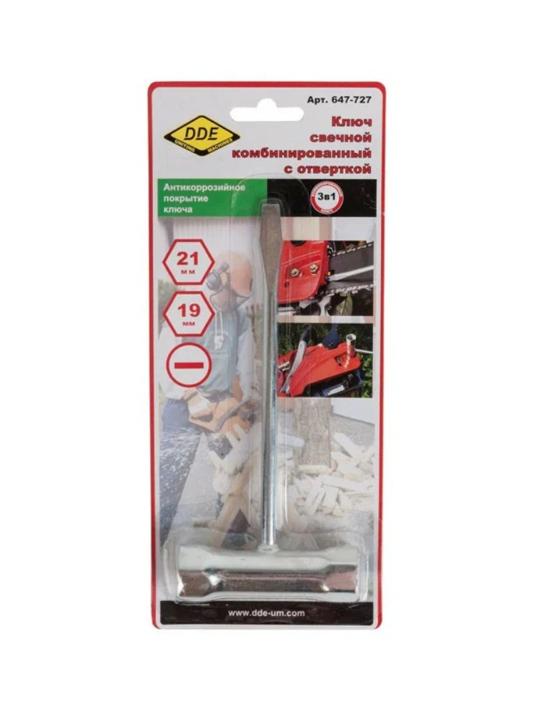 Надежный инструмент для быстрой и точной установки или демонтажа свечей зажигания в бензиновых двигателях легковых и грузовых автомобилей, а также иной техники. Ключ DDE 19*21мм свечной комбинированный позволяет эффективно работать с двумя популярными размерами колпачков – 19 и 21 мм, что делает его универсальным для большинства моделей автомобилей и мотоциклов.