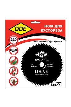 Диск для триммера DDE WOOD CUT 60 зубьев, 230 х 25,4 мм, предназначен для подрезки кустарника и деревьев до 4 см в диаметре. Изготовлен из углеродистой стали. Регулярно затачивайте нож, после заточки обязательно проверяйте балансировку ножа. Рекомендуется для бензиновых триммеров (от 40 см3). Максимальные обороты 10 000. Толщина ножа 1,4 мм. Универсальный диск 230x25,4 мм на 60 зубьев для чистой и точной резки дерева и ЛДСП, совместим с циркулярными пилами, износостойкий и долговечный.