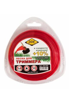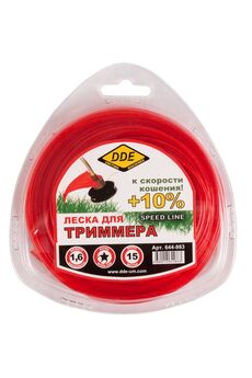 Корд триммерный Speed line DDE применяется при работе с триммерами для кошения травы. Является режущим элементом и заправляется в триммерную головку. Изготовлен из износостойкого сополимер-термопласта марки Luran S. Выдерживает интенсивную эксплуатацию на высоких оборотах. Обладает высокой скоростью кошения. Корд звезда 2,0 мм, 15 м красный — для точного и аккуратного кошения, устойчив к износу, виден на траве, подходит для большинства триммеров.