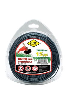 Триммерный корд DDE производится из материала сополимер-термопласт марки Luran S производимой мировым лидером, компанией BASF. Сечение - витой крест. Обладает высокой производительностью кошения и при этом пониженным шумом на 15Дб. Витой квадратный корд, диаметр 2,4 мм, 15 м. Прочный, износостойкий, снижает шум и вибрацию. Для аккуратного и эффективного кошения травы.