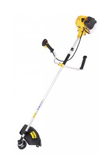 Используется на придомовой территории, в местах, где нет возможности применить газонокосилку или электрический аналог. Бензотриммер GGT 2500t управляется рукоятью велосипедного типа. Мотокоса оснащена двухтактным бензиновым двигателем 2.5 кВт, объёмом 52 см.куб, с топливным баком ёмкостью 1,2 мл г, воздушным охлаждением и решёткой, защищающей от ожогов. Для более быстрого запуска инструмента, в двигатель внедрено электронное зажигание, значительно ускоряющее начало работы. Модель 2500t имеет неразъёмную штангу, удерживающие плечевые ремни и защитный кожух режущего элемента. Бензиновый триммер 2,5 кВт: для бурьяна и кустов, цельный вал, диск и леска в комплекте, облегчённый старт, ремень в наборе.