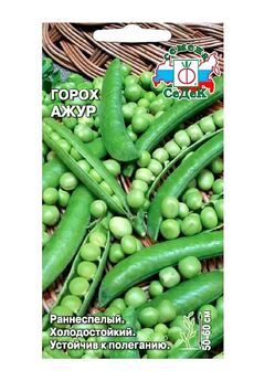 Ранний сахарный горох, урожай через 50 дней, устойчив к болезням, сочные стручки, подходит для салатов, заморозки, консервирования.