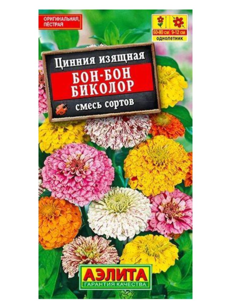 Семена цветов Цинния Бон-бон биколор, смесь сортов 0,3гр Аэлита в Вяземский