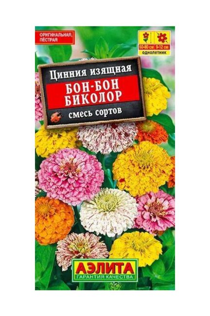 Семена цветов Цинния Бон-бон биколор, смесь сортов 0,3гр Аэлита в Вяземский