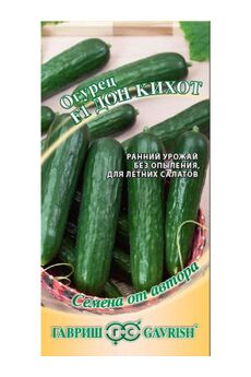 Раннеспелые семена для высокой урожайности, устойчивы к болезням, плоды 12–14 см, не горчат, подходят для салатов и консервации.