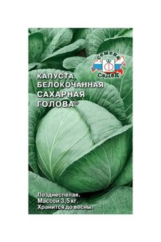 СеменаКапустаСахарнаяГолова0,5гр Крупные, сочные кочаны, высокая всхожесть, устойчивость к болезням, сорт для свежих салатов и квашения — урожай гарантирован.