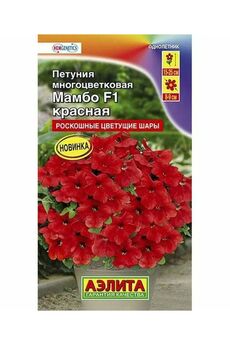 Многоцветковая петуния с яркими красными цветами, устойчива к непогоде, для клумб и контейнеров. Быстрое прорастание и обильное цветение весь сезон.