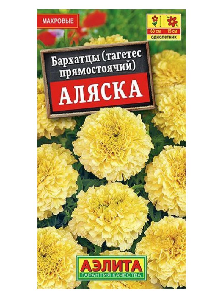 Добавьте яркости и уюта вашему приусадебному участку, клумбе или территории строящегося объекта с помощью великолепных бархатцев прямостоячих сорта «Аляска» от производителя Аэлита. Идеально подходят для оформления дорожек, садовых зон, общественных пространств и декоративного озеленения территорий вокруг дома или предприятия.