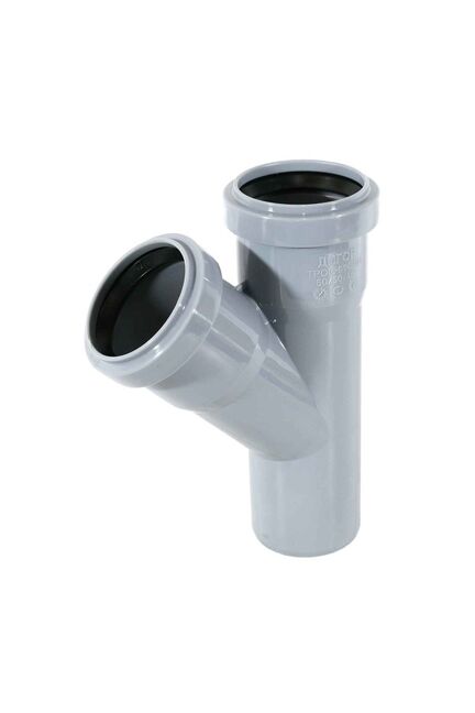 Идеальное решение для обустройства надежной канализационной системы: тройник внутренний Ду 50/50 с углом 45° обеспечивает прочное и герметичное соединение канализационных труб, предотвращая протечки и упрощая монтаж коммуникаций в жилых и коммерческих помещениях.