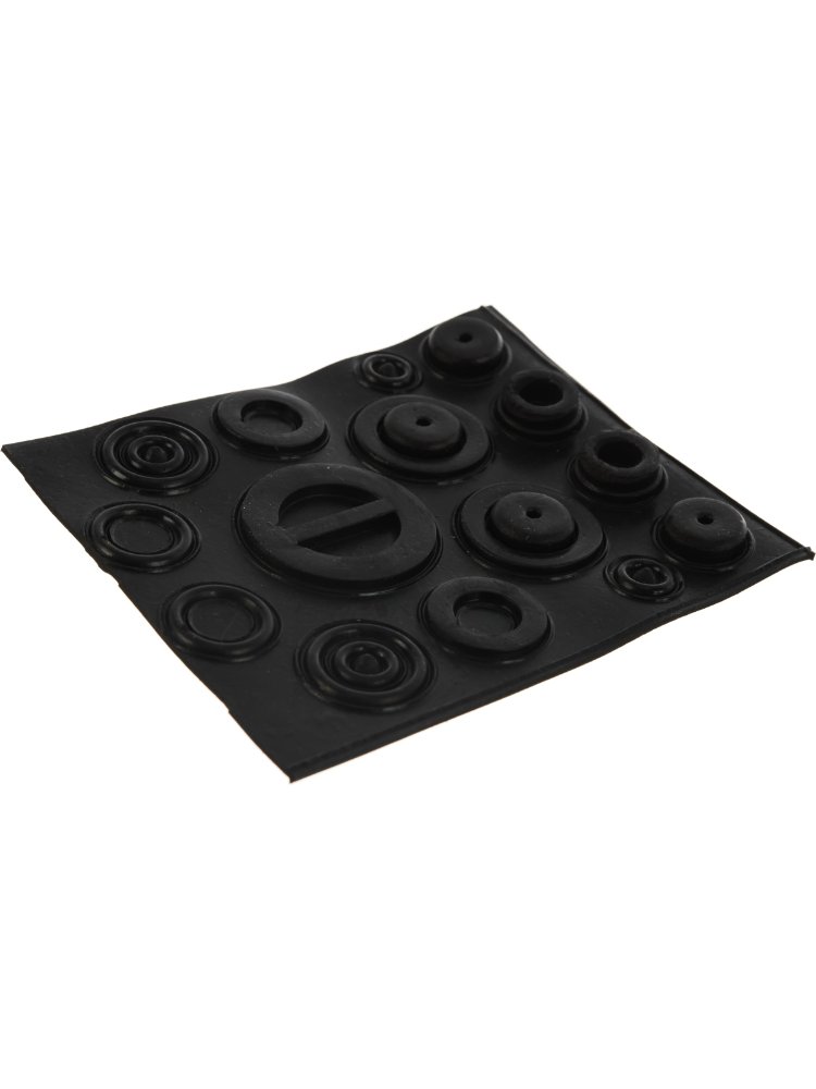 - Содержит ассортимент прокладок стандартных размеров для смесителей, кранов, соединений труб
