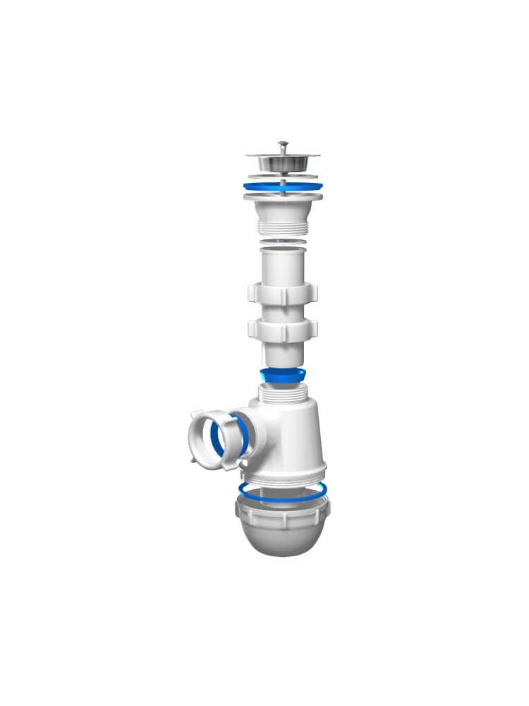Надежное решение для вашей кухни — профессиональный сифон с нержавеющим выпуском обеспечивает эффективный слив воды и защиту от засоров, идеально подходит для установки под кухонные мойки любой конфигурации.