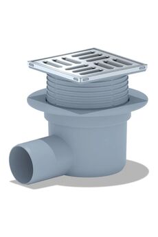 Эффективный водоотвод с вертикальным выпуском, гидрозатвором и стальной решёткой 10×10 см для надежной защиты от запахов и протечек.