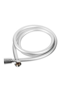Гибкий и прочный 150 см шланг из ПВХ с матовым хромом — идеален для душа, устойчив к перегибам, легко устанавливается, защищён от протечек и коррозии.