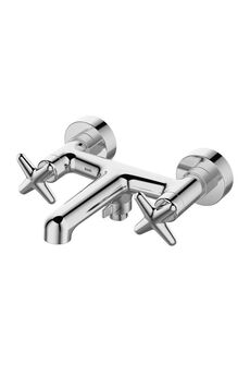 Двухвентильный смеситель для ванны с коротким изливом 6,9 см, из прочной латуни с хромированием, для настенного монтажа, без душкомплекта.