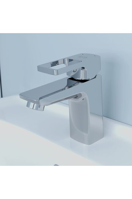 Стильный смеситель для умывальника из латуни, с аэратором и керамическим картриджем. Лёгкая установка, надёжность и экономия воды.