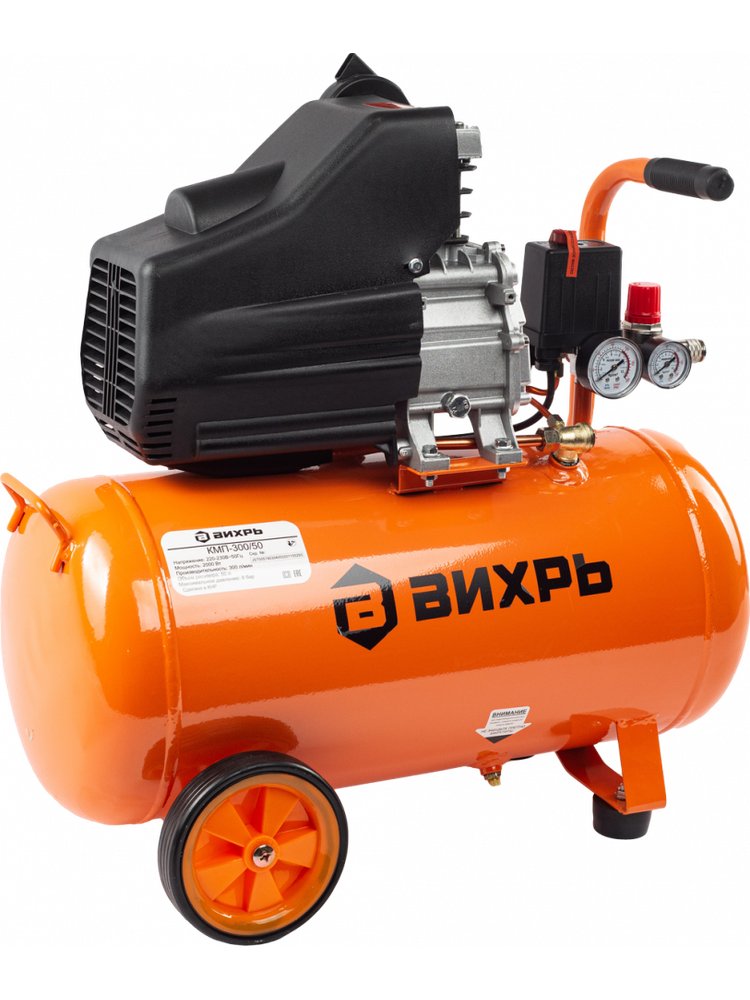 - Объём ресивера: 50 л — снижает падение давления, увеличивает интервалы между включениями.