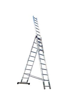 Алюминиевая 3-секционная лестница, 9 ступеней, высота до 5,94 м. Прочная, устойчивая, легкая, для работ внутри и снаружи помещений.