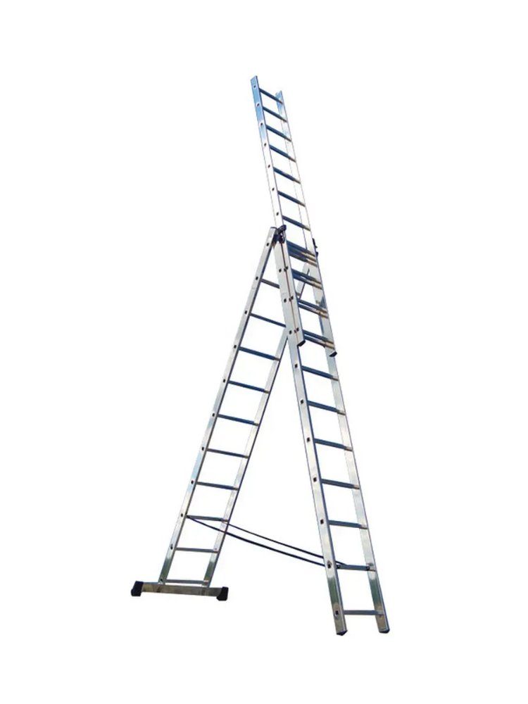 Универсальная алюминиевая лестница 3x13 ступеней создана для эффективного выполнения строительных, ремонтных и монтажных работ как внутри помещения, так и на улице. Максимальная рабочая высота 869 см позволяет свободно работать на большой высоте, а легкая, но прочная конструкция обеспечивает мобильность и надежность.