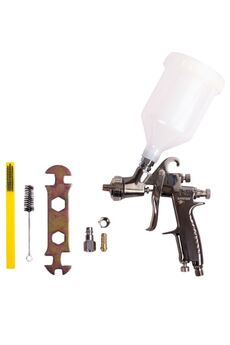 Диаметр дюзы: 0,8 мм. Рабочее давление: 2,0-3,5 атм. Расход воздуха: 70-95 л/мин. Ширина окрасочного факела: 100-150 мм. Размер входного штуцера: 1,4 дюйма. Объем бачка: 0,12 л. Конструктивные особенности: Дюза из нержавеющей стали. Пластиковая емкость для ЛКМ. Регулировка подачи воздуха и ЛКМ. Регулировка ширины красочного факела. Корпус из алюминиевого сплава. Эргономичная конструкция и малый вес. LVLP-распылитель: точное нанесение, минимальный расход, бачок 600 мл, сопло 1,3 мм, давление 1,5–2,5 бар. Для ремонта и декоративных покрытий.