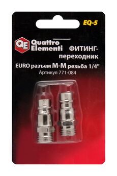 Фитинг-переходник EQ-5 Quattro Elementi - комплект из 2-х принадлежностей для компрессорного оборудования. Фитинги необходимы для подключения шланга к компрессору. Имеют стандартное соединение папа EURO и резьбу папа 1/4". Изготовлены из высококачественной стали, обеспечивают надежное крепление. Переходник евро-стандарт, резьба 1/4 дюйма, набор 2 шт., прочная латунь, для быстрого и надежного соединения пневмоинструмента.