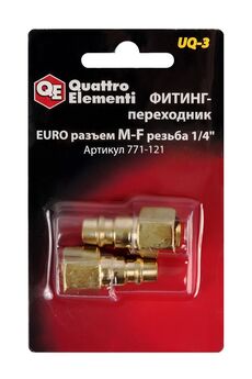 Фитинг-переходник UQ-3 Quattro Elementi - комплект из 2-х принадлежностей для компрессорного оборудования. Переходники используются для подсоединения к компрессору шланга с необходимым пневмоинструментом. Имеют соединение папа EURO - мама резьба 1/4 ". Обеспечивают надежное крепление инструмента. Переходник-фитинг EURO 1/4" (мама), 2 шт. — для быстрого и герметичного соединения пневмоинструмента и компрессоров.