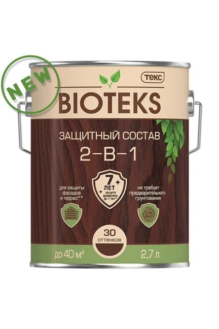 Для деревянных поверхностей из брёвен, вагонки, бруса, строганных и пиленых дощатых фасадов, термообработанной и пропитанной под давлением древесины снаружи помещений.Расход 12 - 17 м2/л по строганой и бревенчатой поверхности древесины; 7 - 9 м2/л по пилёной поверхности древесины. Разбавитель - Уайт-спирит. Время высыхания до отлипа – 1 час, следующий слой можно наносить через – 2 часа, полное – не более 24 часов Глубоко проникающий антисептик для дерева, защищает до 10 лет, оттенок махагон, объем 2,7 л, для наружных и внутренних работ.